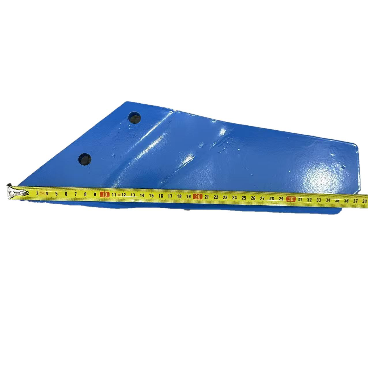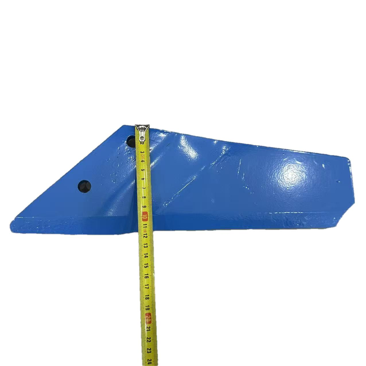 The surface is coated with a thickened blue high-pressure anti-corrosion paint, resulting in a uniform, dense, and highly adhesive film that is not easily peeled off. It possesses excellent rust-proof, corrosion-proof, and moisture-resistant properties, making it resistant to rust and aging even during long-term outdoor field operations. It maintains stable protective performance and the original factory appearance and texture. The overall workmanship is meticulous, with smooth, burr-free edges, precise dimensional tolerances, high fit on machinery, and good tillage stability. It is a high-quality, original factory-fitted plowshare side plate replacement part for deep plowing, tilling, and land preparation operations in farmland.