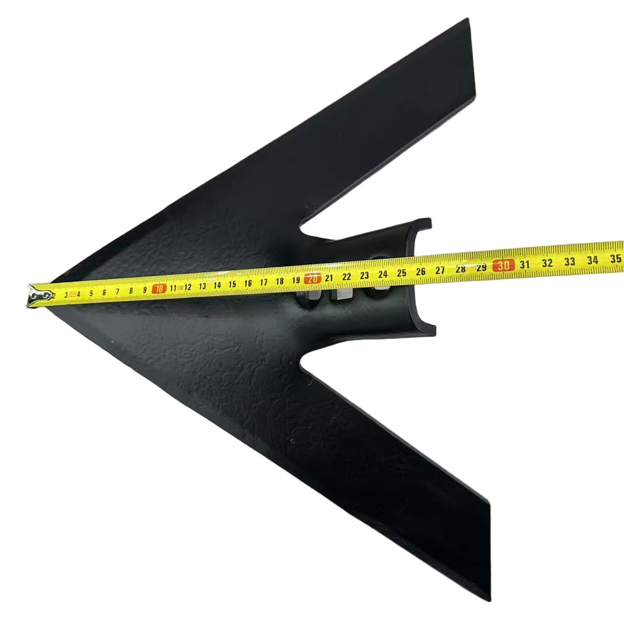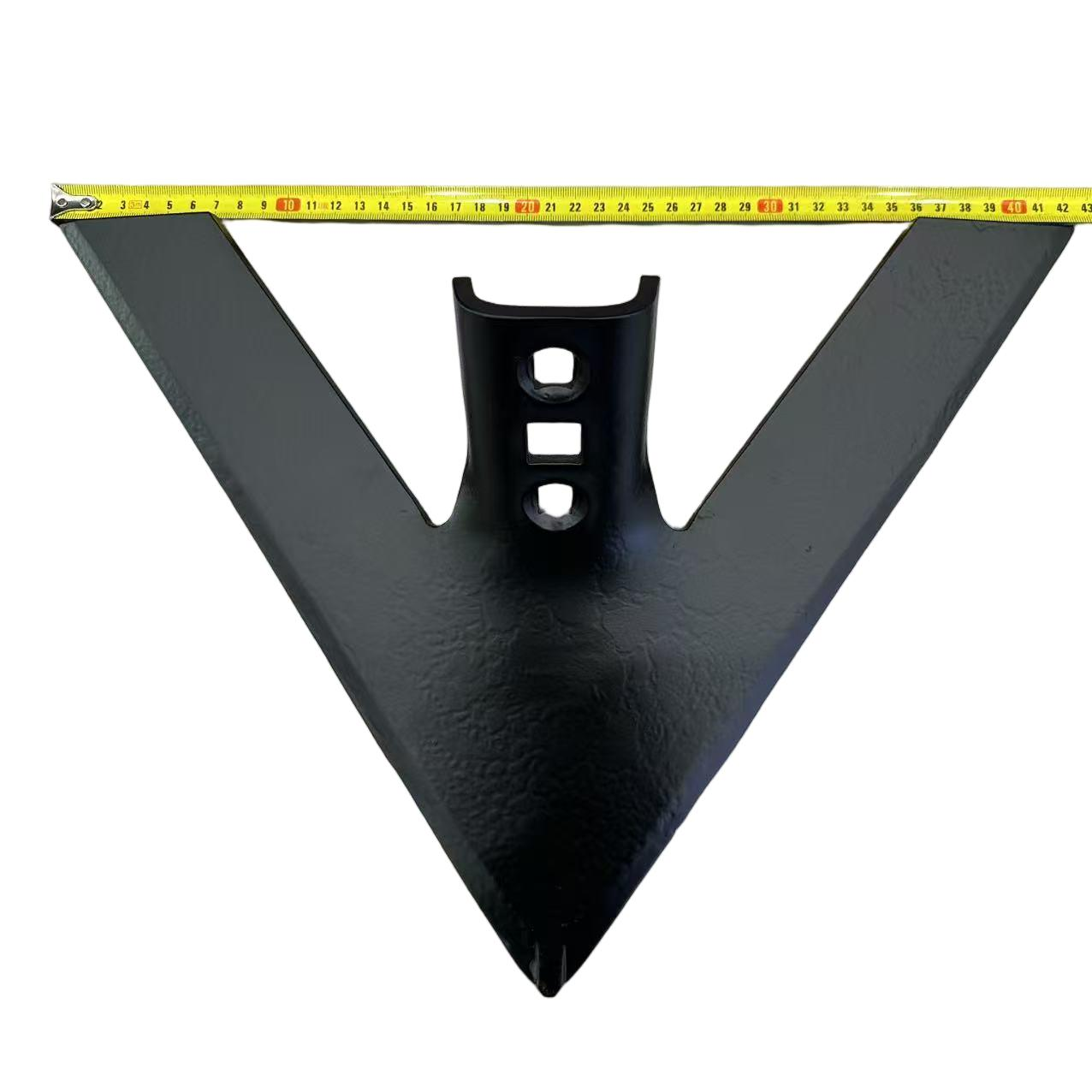 The product has an isosceles triangle or arrowhead shape with a sharp entry angle at the front. The cutting edge curve is optimized based on soil dynamics, reducing traction resistance by 15%-20%. The back has mounting bosses and bolt holes for secure connection to the plowshare and plowshare wall, facilitating easy assembly and disassembly. Some models have added reinforcing ribs on the back, making them suitable for stony or heavy clay soils.