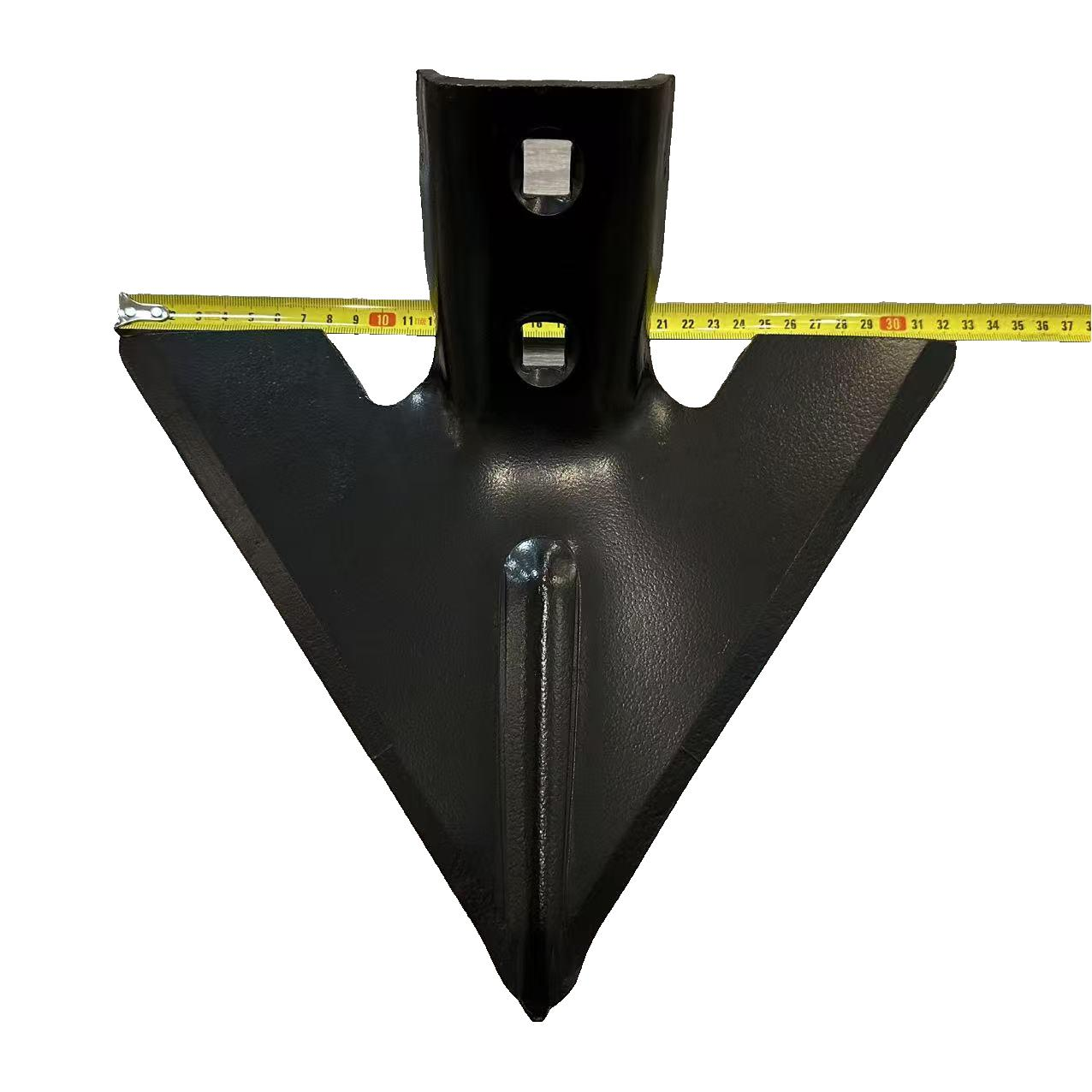 The product features a scientifically designed streamlined shovel head with a sharp, smooth tip, minimizing soil penetration resistance. This makes tillage labor-saving and highly efficient, quickly breaking up soil layers and achieving even soil turning, reducing soil compaction, improving soil aeration and moisture retention, and creating favorable conditions for crop root growth. The shovel's curvature has been precisely calculated to conform to the machine's operating trajectory, preventing soil snagging and accumulation, reducing operating resistance, and saving energy.