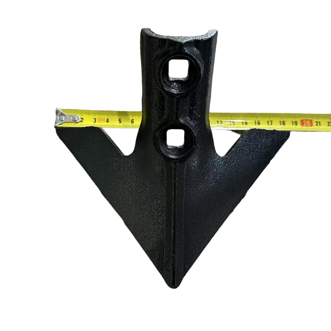 The plow shovel is made of high-strength wear-resistant boron steel or manganese steel alloy as the base material, which is formed by integral forging, with uniform density and no internal pores. The cutting edge is treated with high-frequency quenching, with a hardness of HRC48-55, which combines excellent toughness and wear resistance; The back remains relatively flexible, effectively resisting the impact of hard objects such as rocks and tree roots in the field, and reducing the risk of breakage. Surface coating with rust proof oxide layer extends the corrosion resistance life during storage and field operations.
