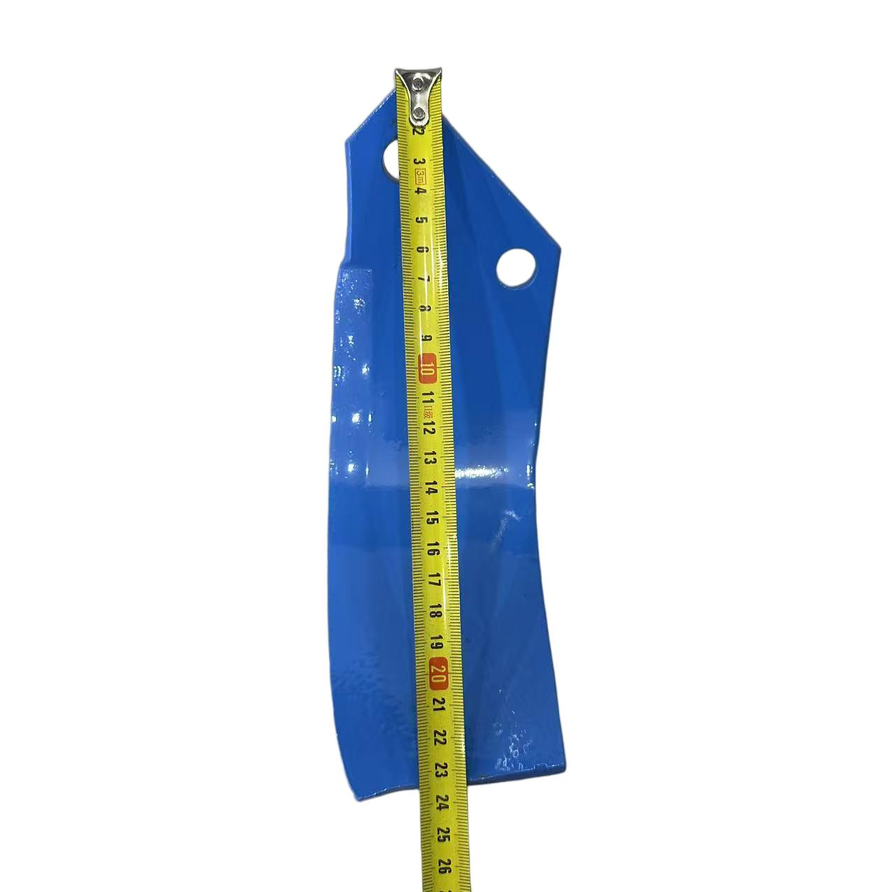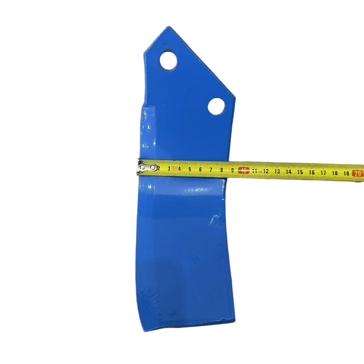 This blue double hole rotary tillage and cultivation knife is specially designed for complex farmland conditions. It is an upgraded replacement tool for rotary tillers and field returning machines, as well as an ideal choice for land reclamation, deep loosening, and stubble cutting operations.